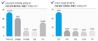 구직자들이 이력서를 작성할 때 비중이 경력사항이나 스펙에 대해 가장 중점적으로 입력하는 것으로 알려져 있는데 이력서 사진도 못지 않게 중요한 것으로 파악되었다. 위에서도 볼 수 있듯이 인사담당자 72.2%가 “어느정도 고려”가 될 정도로 이력서 사진을 중요하다고 답했다.